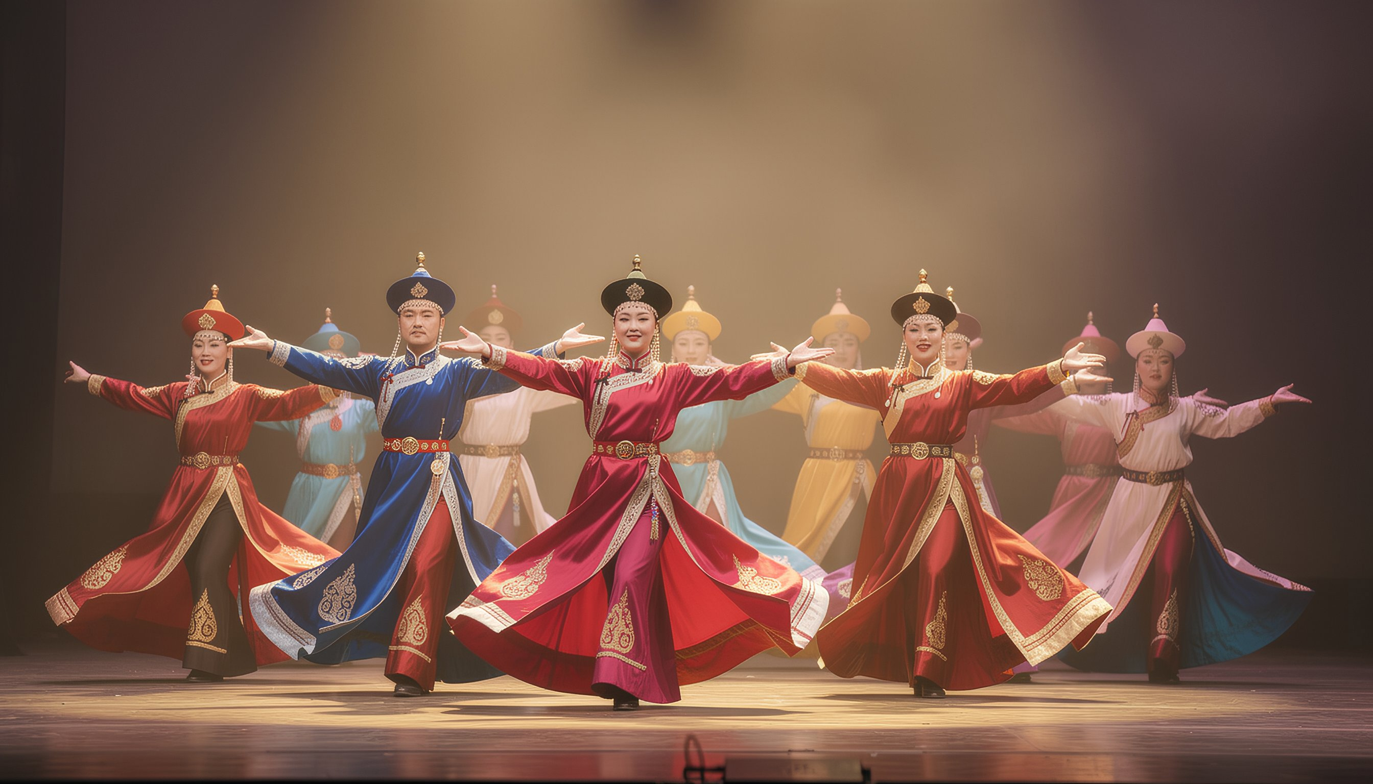 Mongolian dance introduces a powerful sense of space and strength, with bold formations, sweeping arm lines, and resonant musical textures. It celebrates unity through diversity, adding depth and contrast to Lunar New Year programming.